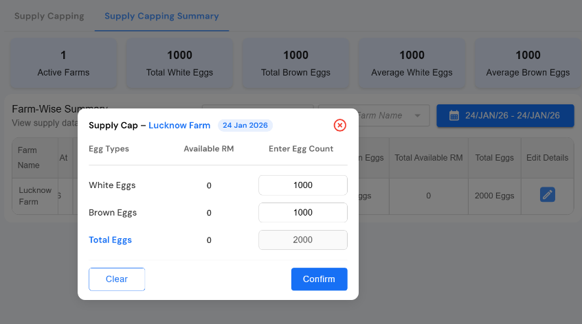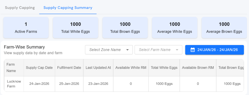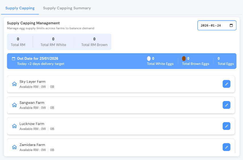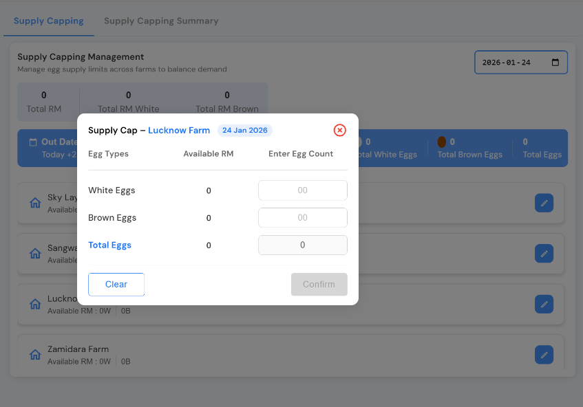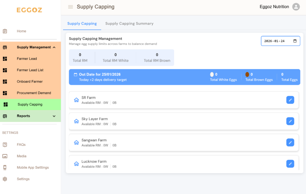 The Supply Capping feature allows the Supply Manager to declare a daily, farm-wise tentative production capacity directly in OMS.